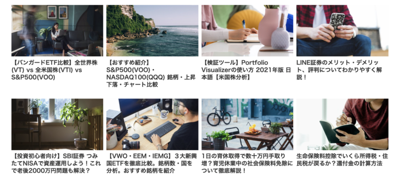 ショートコードで記事を表示する場合、通常は記事が縦1列に並びますが、当サイトでは記事を横並びに表示するようにCSSで指定しています。