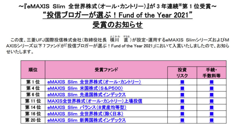 こちらに関しても、三菱UFJ国際投信のホームページに公開されています。