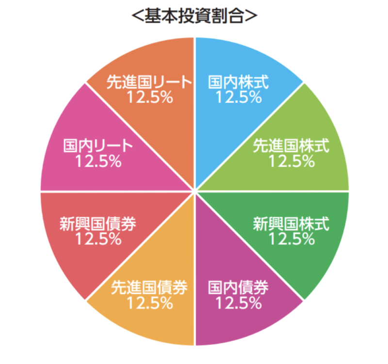 バランス(8資産均等型)とは、以下の8つの分野の投資先を示しています。