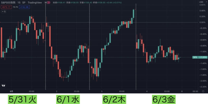 「5月 ISM製造業景況感指数」「5月 米雇用統計」の発表があったタイミングです。