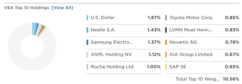 VEAの上位10銘柄(日欧など先進国株式、米国除く)